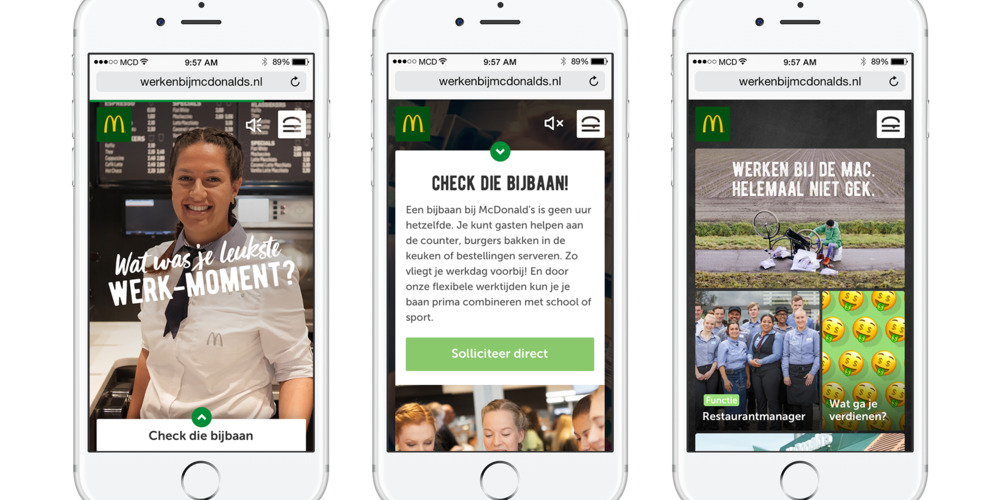De nieuwe wervingssite van McDonald’s Nederland, speelt nu helemaal in op de mobile first generatie. Het bedrijf vernieuwt de wervingssite om voldoende gemotiveerde en getalenteerde medewerkers te vinden voor haar 244 restaurants in Nederland. Die moeten ook nog eens nieuwe competenties hebben, omdat de restaurants veranderen.