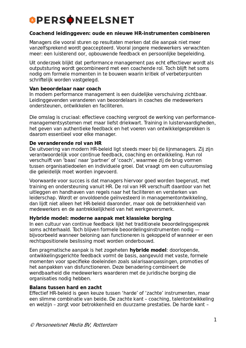 Dit artikel is afkomstig uit HR Tools & Extra’s van Personeelsnet.nl. Auteursrecht berust bij Personeelsnet Media BV, Rotterdam.