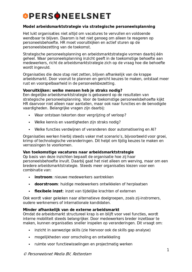Dit artikel is afkomstig uit HR Tools & Extra’s van Personeelsnet.nl. Auteursrecht berust bij Personeelsnet Media BV, Rotterdam.