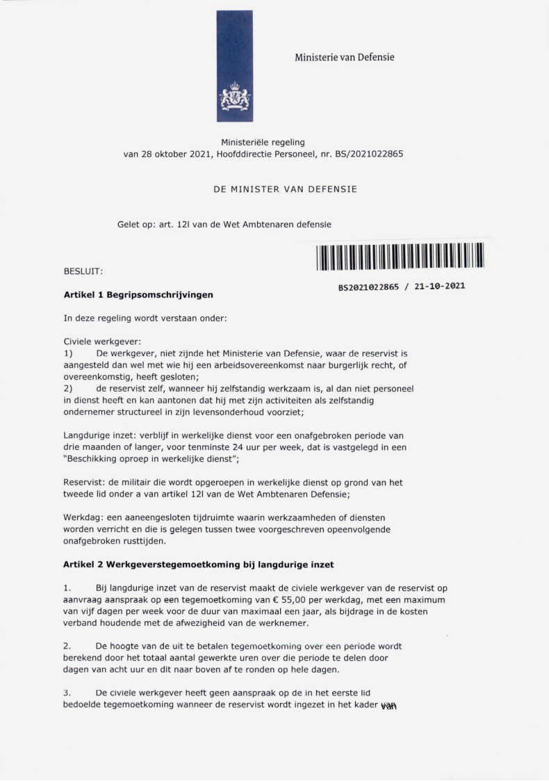 Werkgeversorganisaties en vakbonden hebben in de Stichting van de Arbeid afspraken gemaakt over de inzet van reservisten en de gevolgen voor werkgevers en werknemers. Reservisten zijn mensen die hun civiele baan combineren met een militaire aanstelling. Voor werkgevers betekent dit dat een medewerker tijdelijk of langdurig afwezig kan zijn, terwijl het dienstverband gewoon doorloopt. Hiervoor kunnen ook bepalingen gelden die zijn opgenomen in het nevenwerkzaamhedenbeding van de arbeidsovereenkomst. Als de reservist bijvoorbeeld in het weekend wordt ingezet, tellen die uren mee voor de Arbeidstijdenwet. Dan kunnen er dus minder uren overblijven die beschikbaar zijn voor de werkgever.