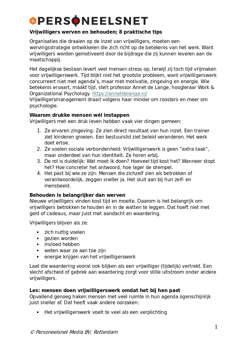 Dit artikel is afkomstig uit HR Tools & Extra’s van Personeelsnet.nl. Auteursrecht berust bij Personeelsnet Media BV, Rotterdam.